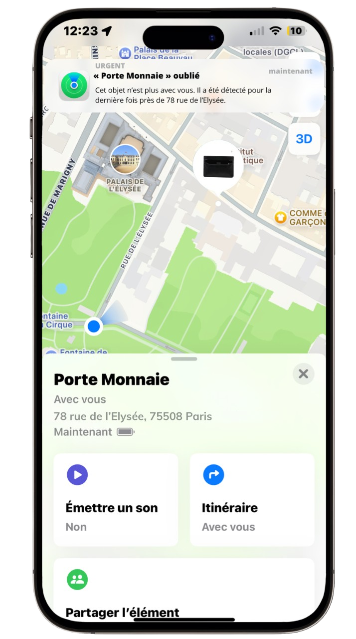 Restez notifié dès que vous vous éloignez de vos effets personnels!
